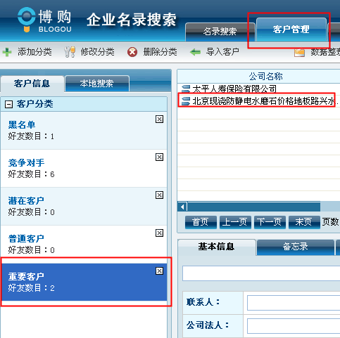 博购提供了简单实用的客户管理功能,可以将搜索的客户信息,导入到客户管理中。