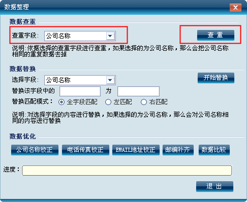 点击【数据整理】后,显示如下界面,选择需要去重的字段,点击【查重】即可