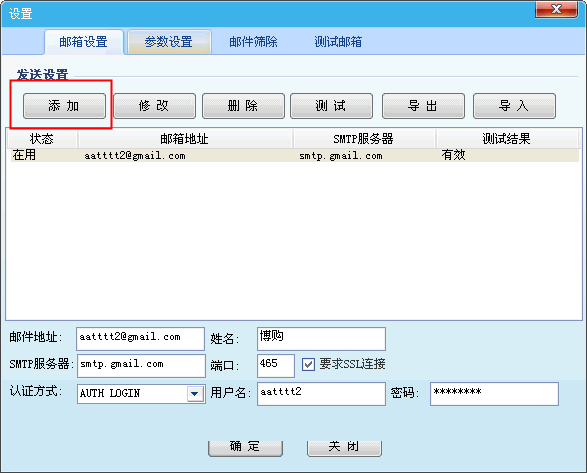 3.在添加画面中,直接填写申请的可以支持SMTP的邮箱。